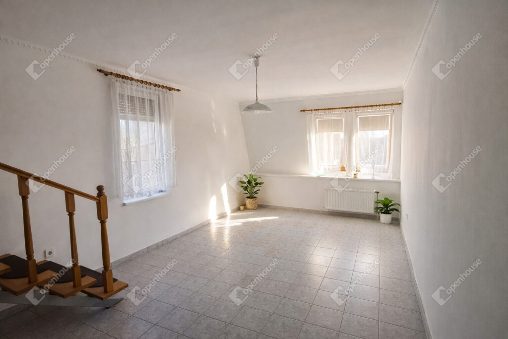 Az elrendezés kifejezetten praktikus: a közösségi terek és a privát élettér jól elkülönülnek, ezért többgyermekes család számára is kényelmes, de home office kialakítására is tökéletes.
