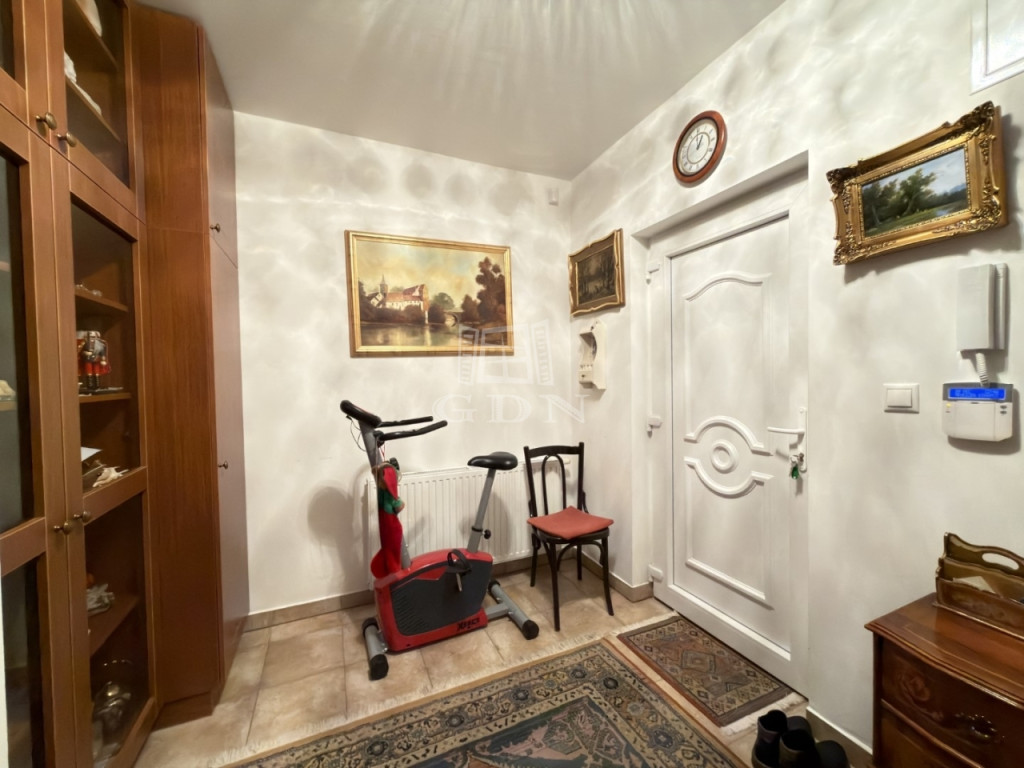 Az eladási ár része egy 16 m²-es fedett gépkocsibeálló, valamint az ahhoz tartozó 4,38 m²-es saját tároló. A társasház térkövezett belső kocsibehajtóval rendelkezik, továbbá a hátsó, zárt udvarban egy további autó számára is biztosított a parkolás.
