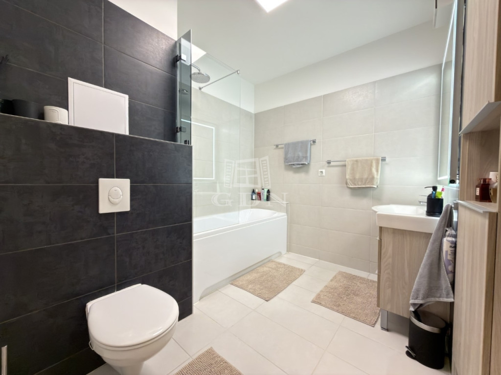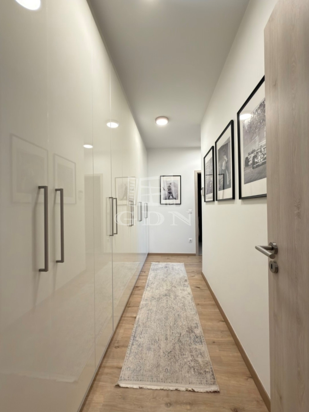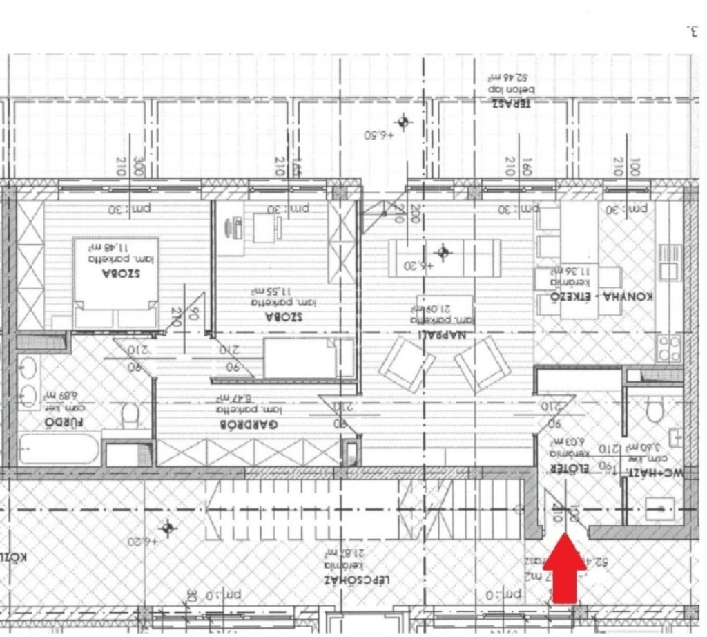 A lakás különlegessége a 52,46 m²-es, részben fedett terasz, amely tökéletesen alkalmas pihenésre, étkezésre vagy vendégek fogadására. A terasz további kényelmét elektromos napellenző biztosítja. Az ingatlan minden ablaka háromrétegű műanyag nyílászáróval és elektromos alumínium redőnyökkel felszerelt, a bejárati ajtó pedig több ponton záródó, prémium minőségű kivitel.