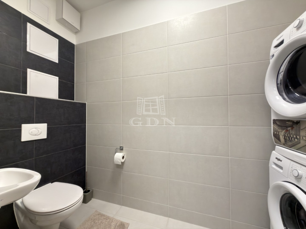 A 80,47 m²-es lakás amerikai konyhás nappaliból, valamint két különálló, szeparált szobából áll. A háztartási helyiségben külön WC kapott helyet, a fürdőszoba pedig káddal és további WC-vel felszerelt. A lakás nyugati és déli irányból is rendkívül világos, DNy-i tájolásának köszönhetően egész nap természetes fényben fürdik.