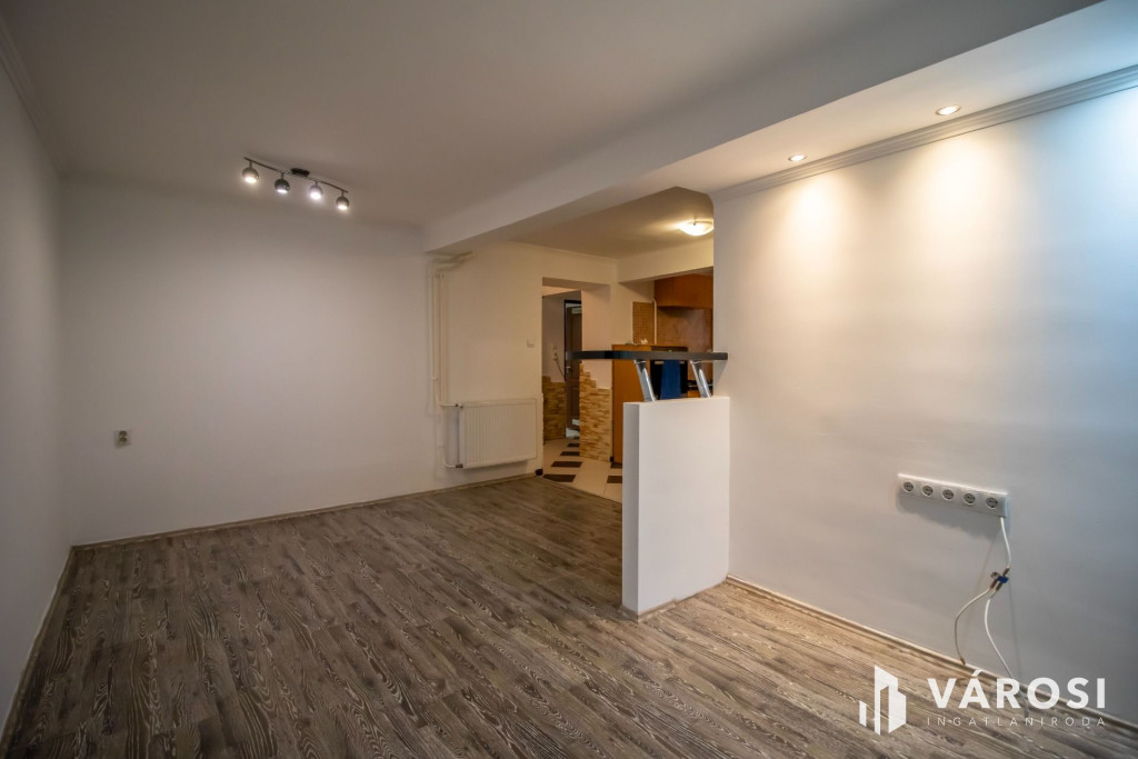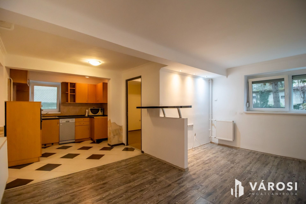 Irodának vagy lakásnak is ideális ez az azonnal költözhető, csendes helyen lévő, teljesen felújított félszuterén nappali + 2 szobás lakás a belváros közelében.