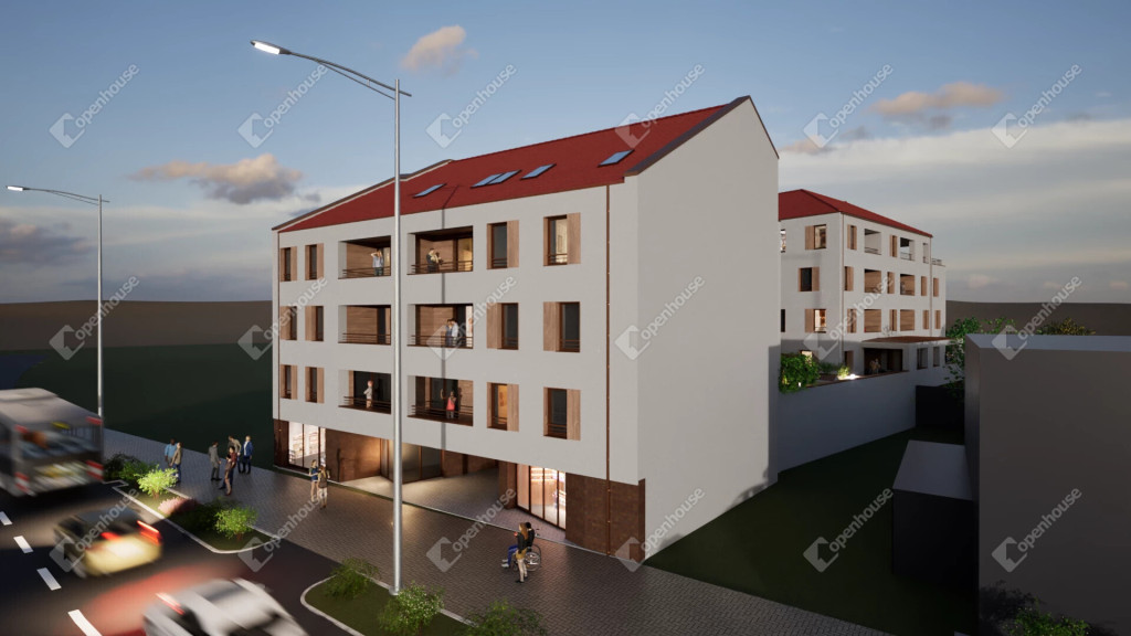 A földszint + négy szintes, magastetős épület impozáns, mégis visszafogott megjelenésével harmonikusan illeszkedik a belvárosi környezetbe. Időtálló összhatását a gondosan megválasztott, minőségi anyaghasználat biztosítja. A földszinten 5 üzlethelyiség, valamint 29 férőhelyes fedett garázs kap helyet. Az emeleteken kialakított lakások mindegyikéhez erkély vagy terasz tartozik. Az épület két tömbre tagolódik, amelyek között zöld belső kert jön létre, mindkét tömb korszerű lifttel ellátott.