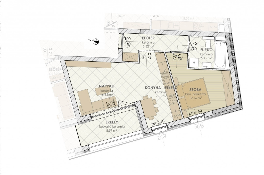Hirdetésben szereplő A33-as lakás nettó 48.56 m2, hozzá tartozó erkély 8.59 m2. Nappali-konyha-étkező, egy hálószoba, fürdőszoba elosztású.