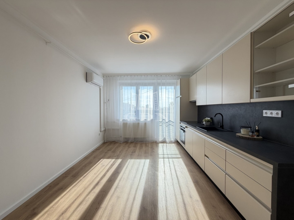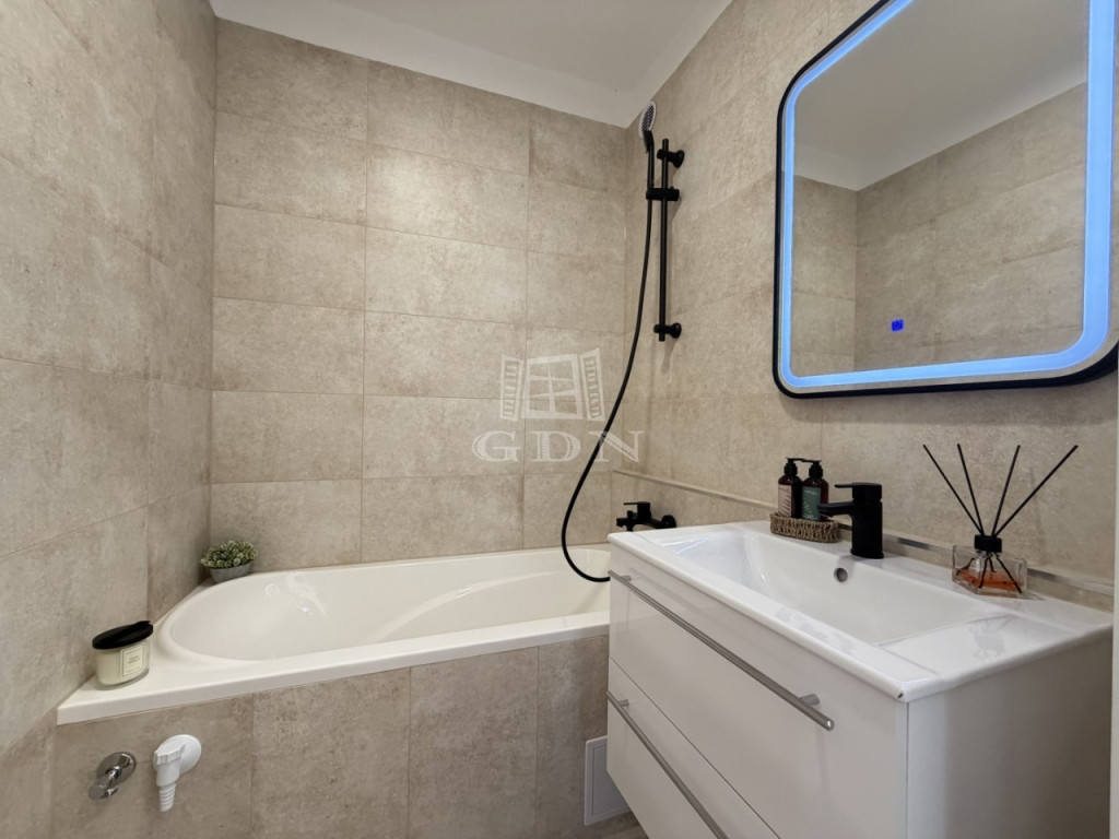 Az átalakítást követően, a konyha átkerült a nappaliba, így, 2 db külön nyíló szoba került kialakításra. A lakásban az összes burkolat cseréje megtörtént. A beltéri ajtók is újak, modern letisztultak. A fürdő is teljesen megújult, RAVAK kád került beépítésre.