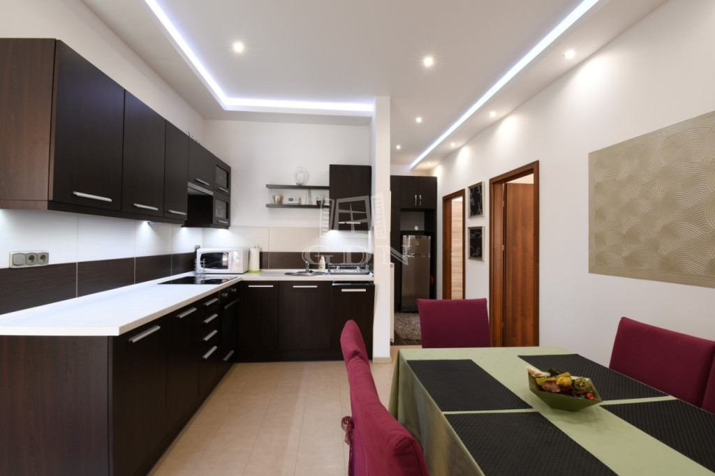 ízléses, modern bútorzattal berendezett, kiváló állapotú. Az új, hőszigetelt műanyag nyílászárók szúnyoghálós redőnnyel felszereltek, így a komfort és az energiatakarékosság is adott.
