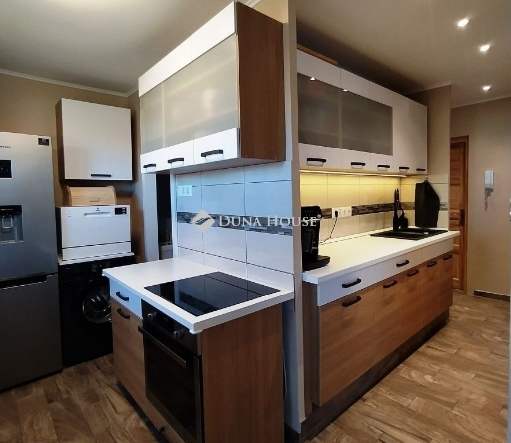 Önnek csak költözni kell!Eladó 4 emeletes házban egy luxus szinten, pár éve teljesen felújított, nappali + 3 félszobás, 60 m2-es, 4. emeleti lakás, egyedi beépített bútorokkal, modern beépített gépekkel, gardróbokkal, klímával. Az ízléses, magas minőségű burkolatok új villany és vízvezetékeket takarnak. Az acél biztonsági ajtó, a redőnyös, szúnyoghálós ablakok, az egyedi beltéri ajtók és előszoba bútorok mellett fontos szempont lehet a leendő tulajdonos számára, hogy a lakáshoz tartozik egy saját, nagy méretű tároló is. Ez a belváros közeli lakás jó lehetőség akár kisgyermekes családnak is, hiszen iskola, óvoda, boltok, játszótér, park pár lépésnyire található. A lakóközösség csendes, az épület és a tető is szigetelt, a közös költség pedig alacsony.