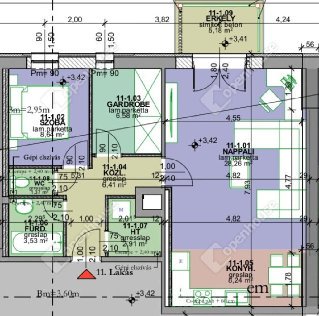 1 Em./11. lakás, 65.94 m2 + 5.18 m2 tersz