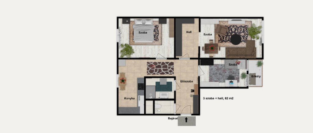Mivel a lakás bútorozatlan, ezért a képek között mutatunk pár látványtervet, ami ötletet ad a berendezéshez.