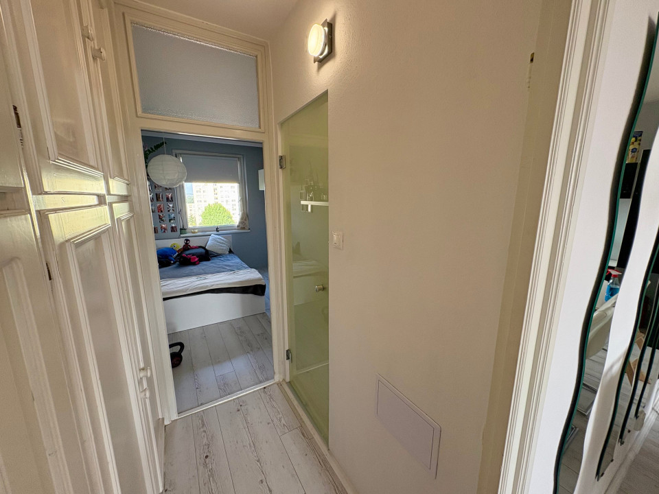 A lakás praktikus elrendezéssel rendelkezik: a bejárat mellett helyezkedik el az első félszoba, továbbhaladva pedig egy tágas, világos nappali–étkező–konyha egyterű helyiség fogad. A nagy nappaliból nyíló 3 m²-es erkélyről gyönyörű panoráma tárul a városra.