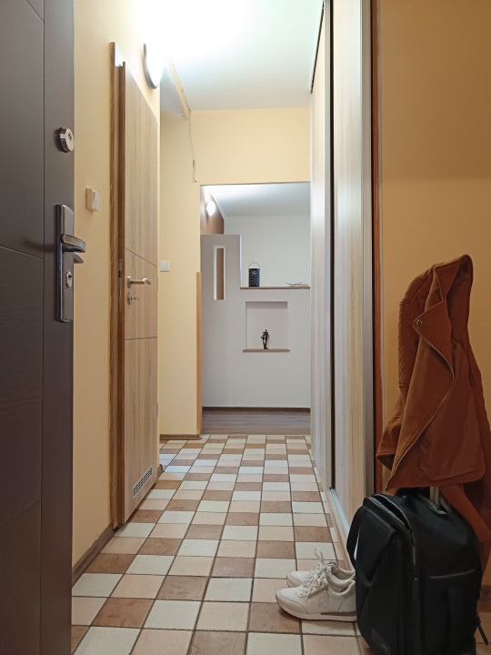 -Az előszobában a beépített szekrénysor új, modern tolóajtókkal lett felszerelve.