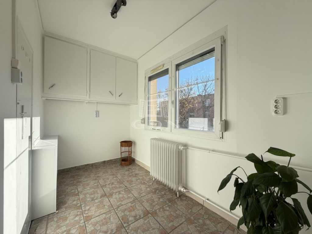 A 35nm-es lakás jó állapotú, új a villanyvezeték, 1 * 32A bővítés megtörtént, A műanyag nyílászárókon redőny, szúnyogháló található. Minden helyiségben a falak frissen festettek, járólap van a közlekedőben és vizes helyiségekben és az étkezőben, laminált padló a szobában.