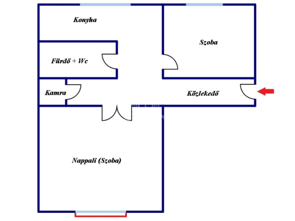 A hálószobában és az előtérben beépített szekrény, valamint a közlekedőben egy kamra található, ami praktikusan kihasználható.