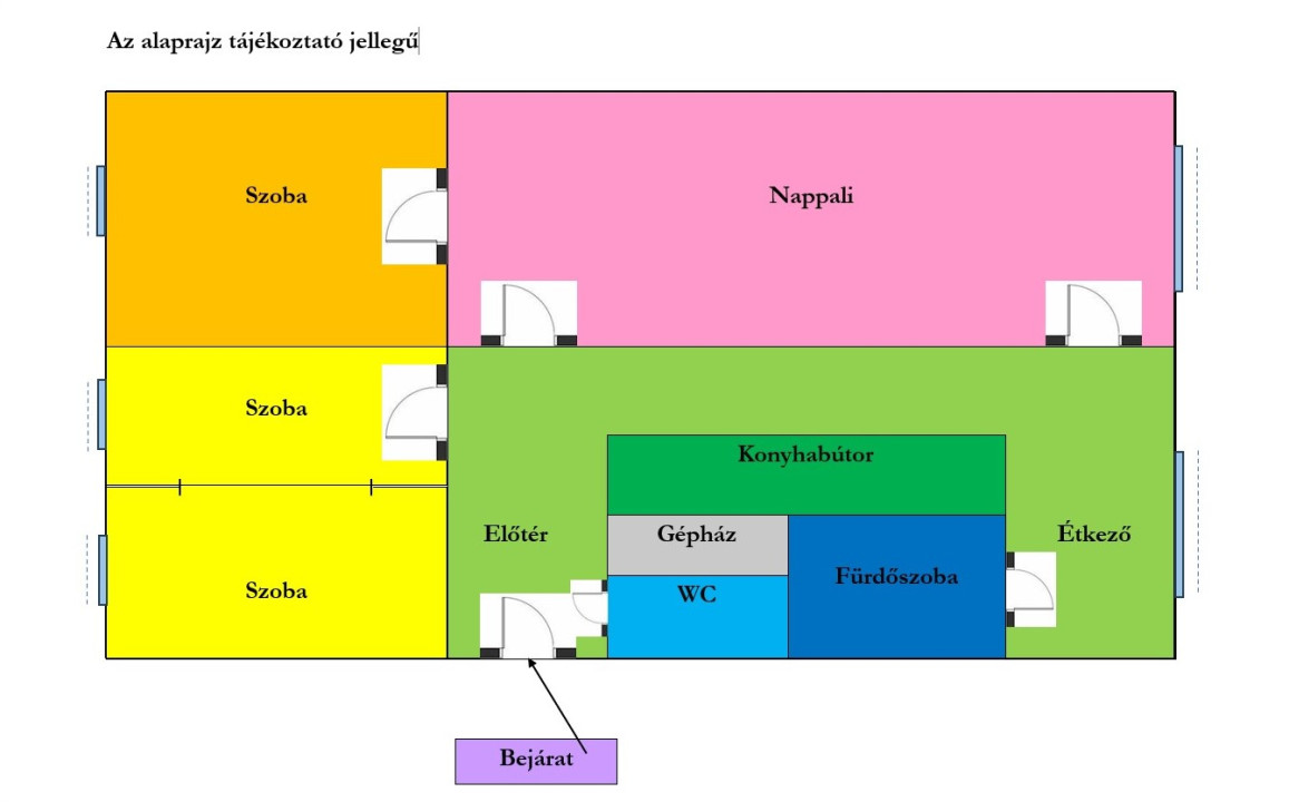A két kisebbik szoba az előszobából nyílik, és egybe nyílóak.