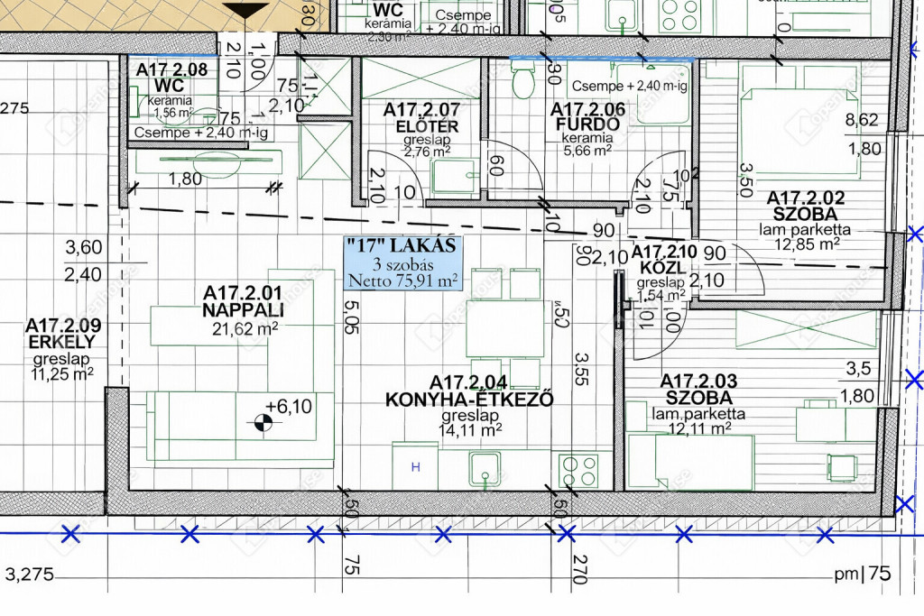 világos, amerikai konyhás nappali étkezővel, 2 külön szoba, háztartási helység, elegáns fürdőszoba, valamint külön WC szolgálja a mindennapi komfortot.