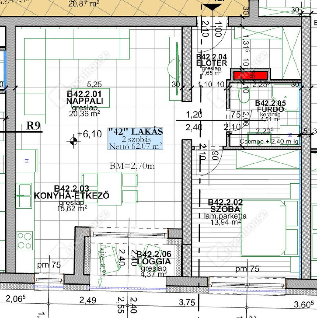 Az Aurum Palace exkluzív lakóépületében elérhető egy II.emeleti 62,07 m²-es, 2 szobás, prémium kivitelezésű lakás(L42) és a hozzá tartozó 4,37 m²-es loggia, amely a modern városi élet minden kényelmét magas színvonalon kínálja.