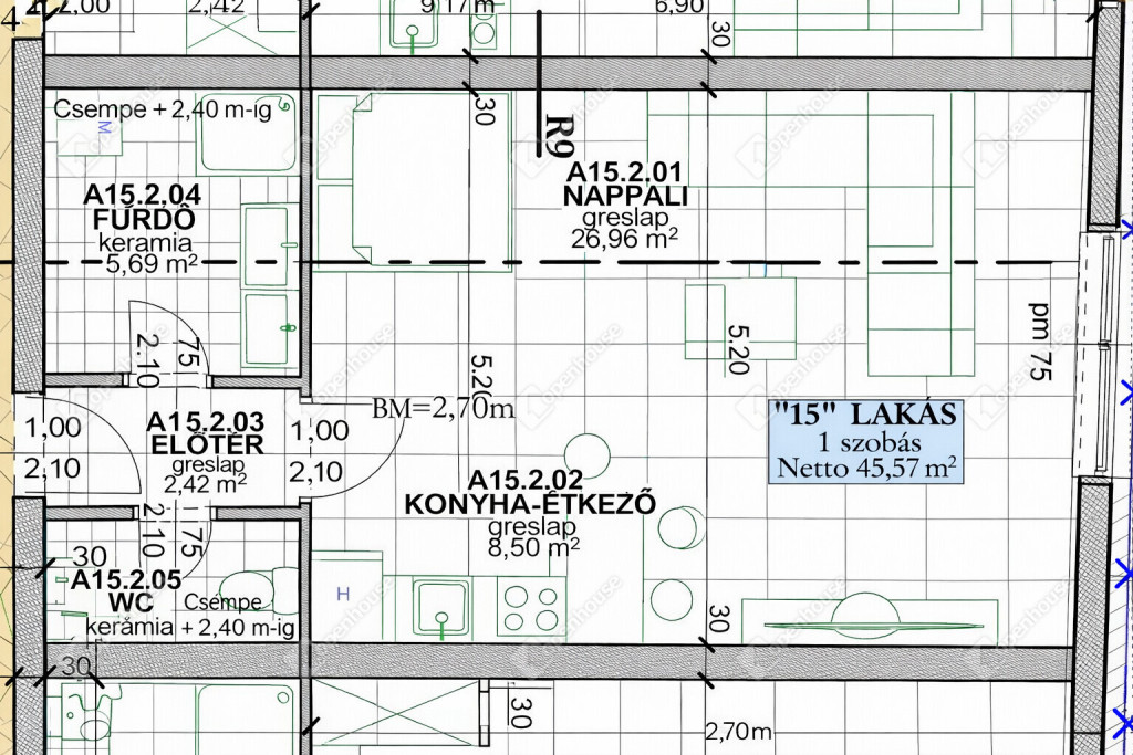 világos, amerikai konyhás nappali étkezővel, elegáns fürdőszoba, valamint külön WC szolgálja a mindennapi komfortot.