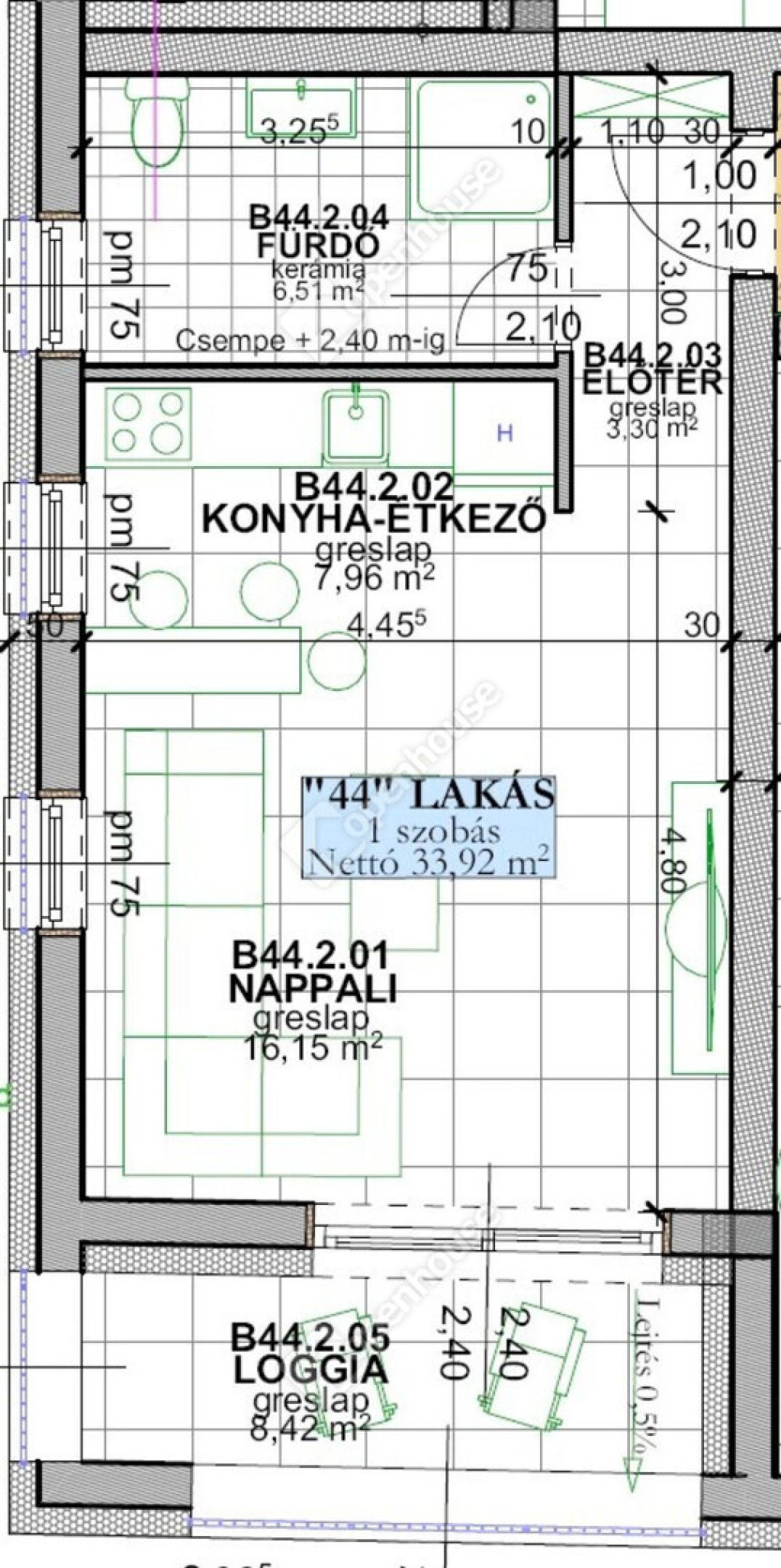 Világos, amerikai konyhás nappali étkezővel, előszoba, fürdőszoba, valamint külön WC szolgálja a mindennapi komfortot.