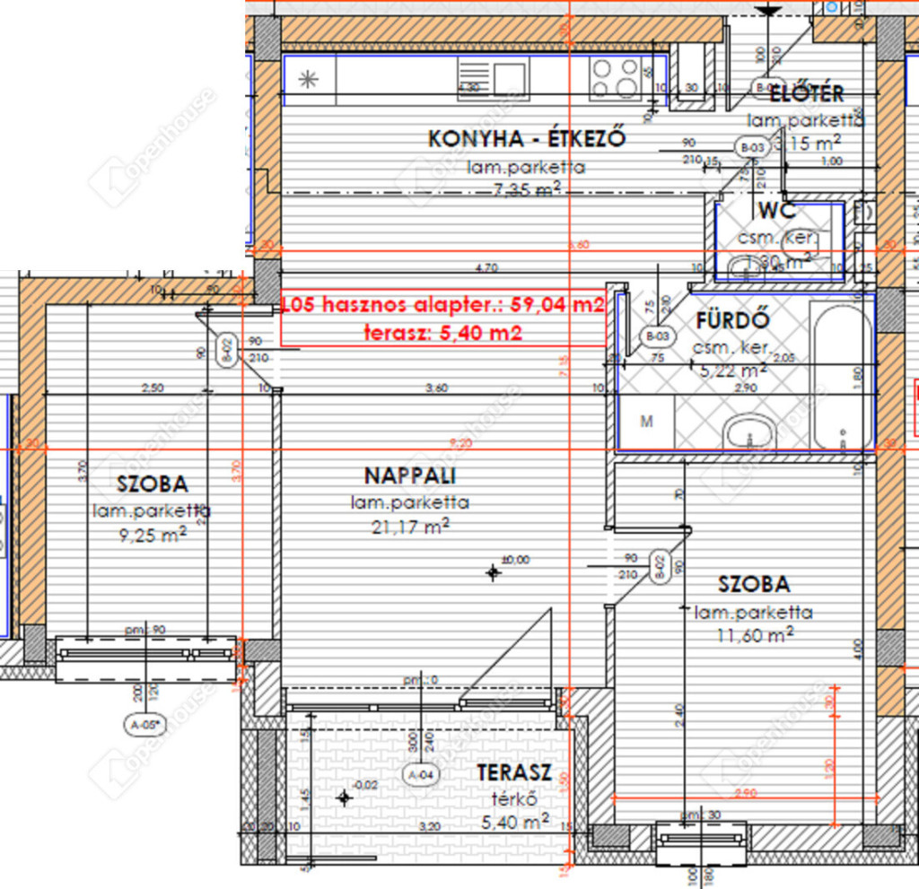 nettó 59,04 m2-es lakás + 5,4 m2-es fedett erkély