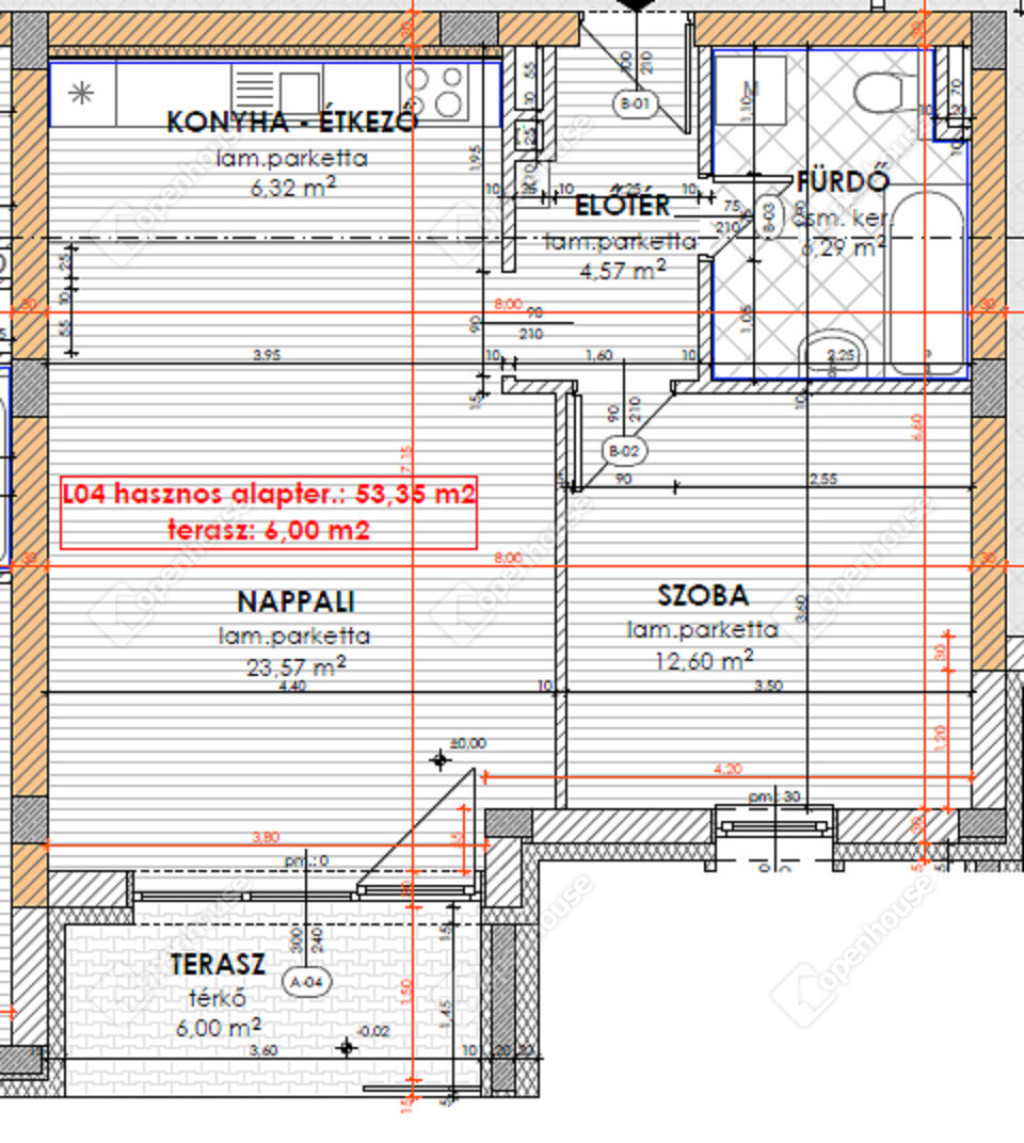 nettó 53,35 m2-es lakás + 6,00 m2-es fedett erkély