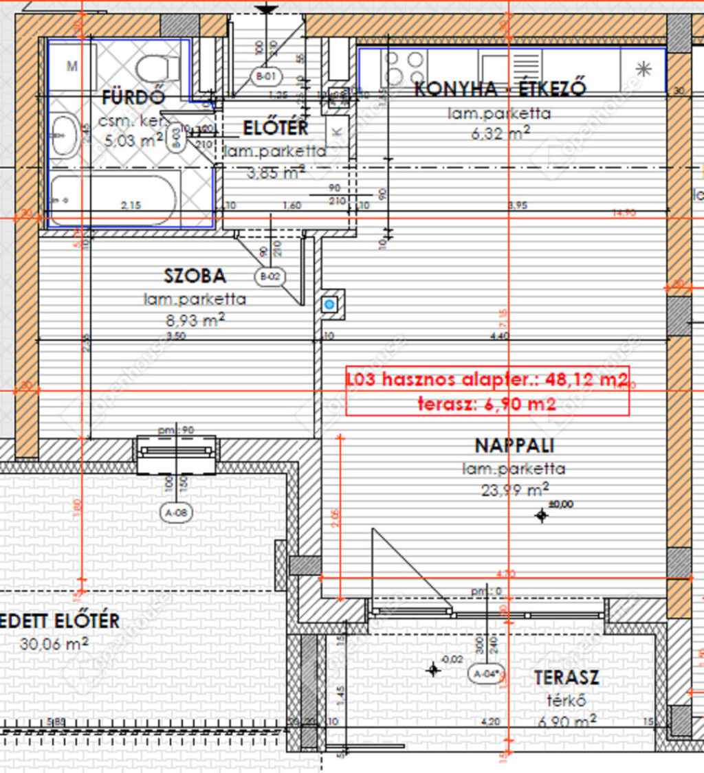 nettó 48,12 m2-es lakás + 6,9m2-es fedett erkély