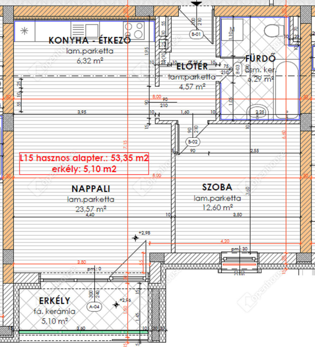 nettó 54,35 m2-es lakás + 5,10 m2-es fedett erkély