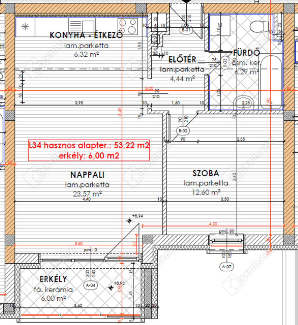 nettó 53,22 m2-es lakás + 6,00 m2-es fedett erkély
