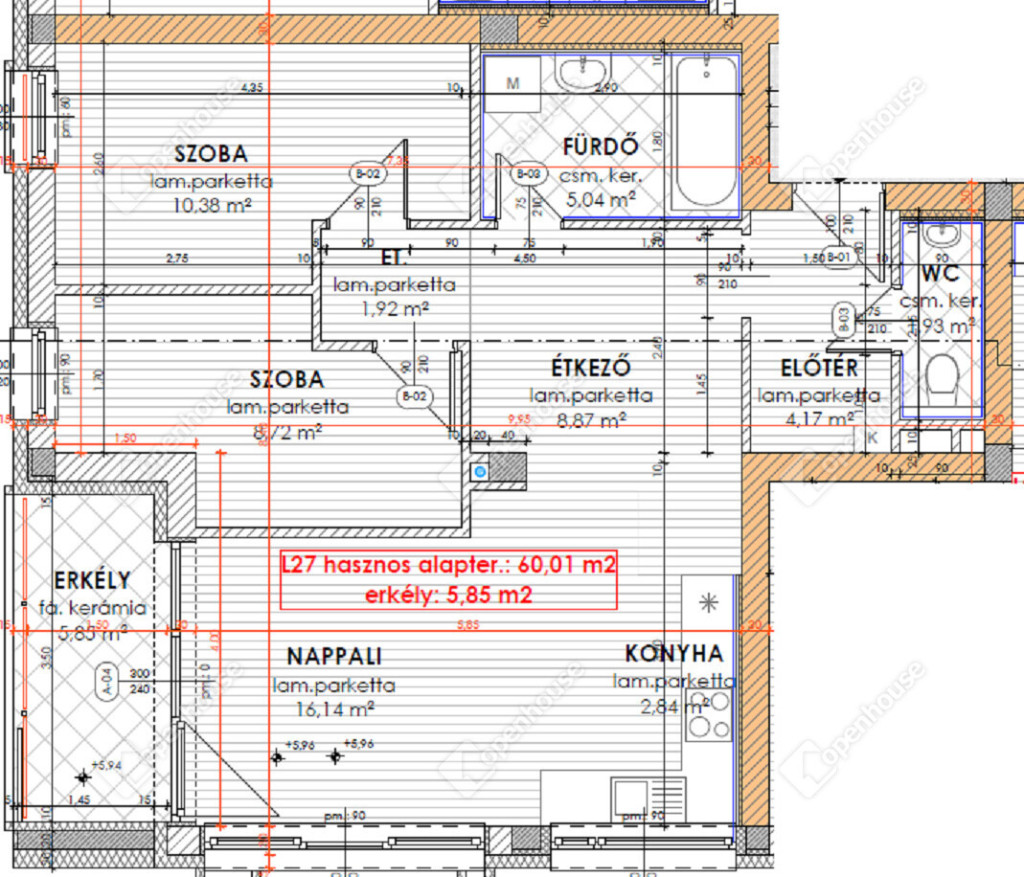 nettó 60,01 m2-es lakás + 5,85 m2-es fedett erkély