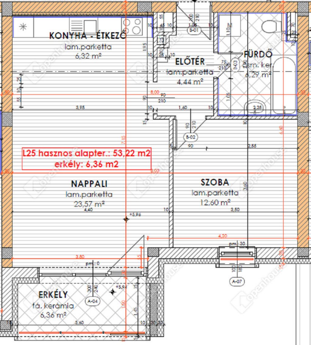 nettó 53,22 m2-es lakás + 6,36 m2-es fedett erkély