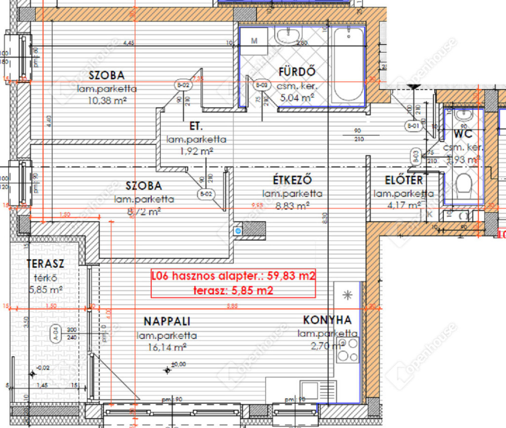 nettó 59,83 m2-es lakás + 5,85 m2-es fedett erkély