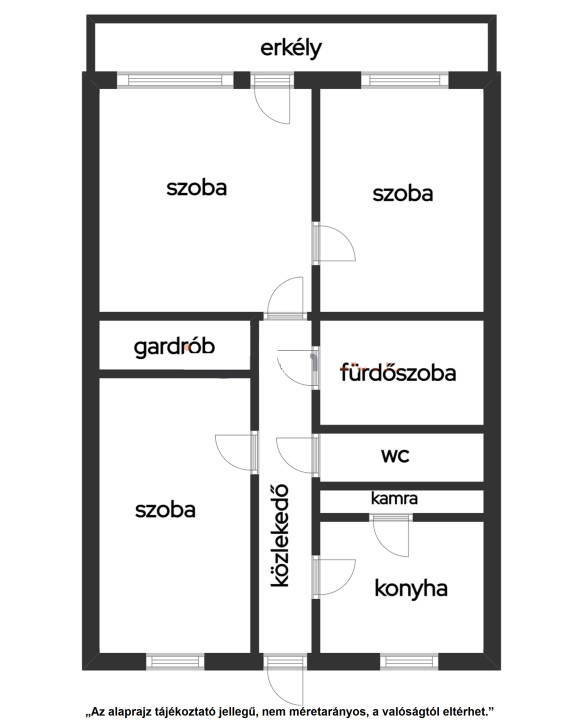 A lakás elosztása praktikus és jól kihasználható: 2,5 szoba, előszoba, fürdőszoba, külön toalett, konyha, spájz, valamint egy nagyméretű, 10 m²-es erkély, amely kiváló lehetőséget biztosít pihenésre.