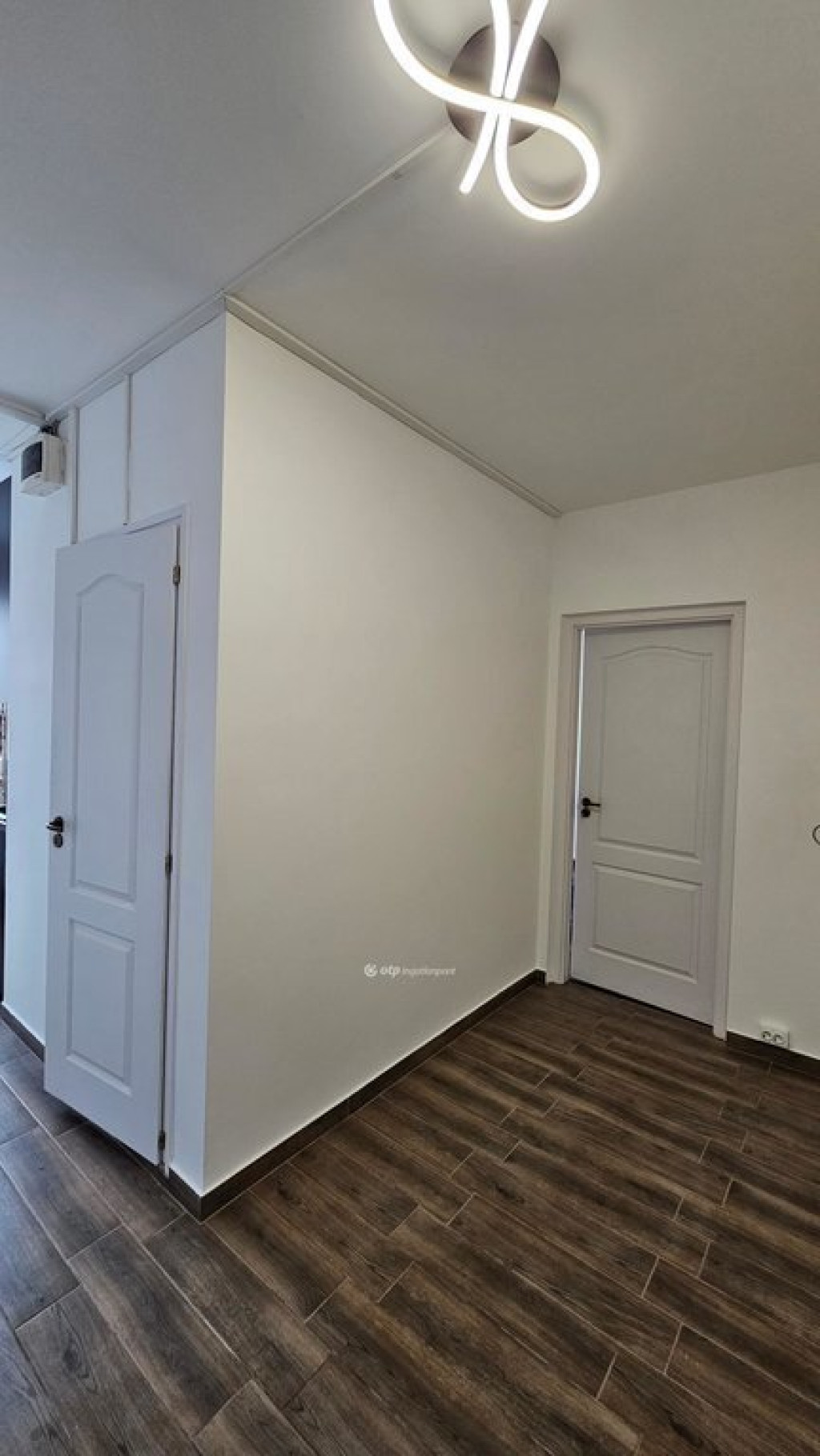 A felújítás során a falakat betonig visszacsiszolták, újra glettelték és fehérre festették, a teljes elektromos hálózatot új rézvezetékekkel cserélték, a víz- és szennyvízcsövek pedig már a falban megújultak, így a társasházban idén esedékes kötelező vezetékcsere ezt a lakást már nem érinti. Új burkolatok, új szaniterek, új beltéri és bejárati ajtók kerültek beépítésre, a távfűtés egyedi mérőkkel működik, az új radiátorok felszerelése folyamatban van, a konyhában pedig gázfőzési lehetőség is rendelkezésre áll. A külső nyílászárók korábban, a panelprogram keretében már cserélve lettek, a társasház hőszigetelt.