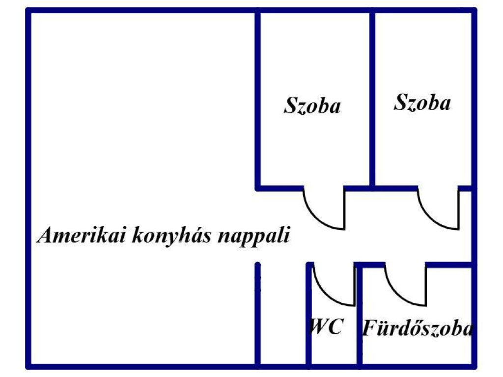 A lakás amerikai konyhás nappalival, 2 szobával, tágas fürdőszobával rendelkezik, elosztása kiváló, terei világosak és jól használhatók.