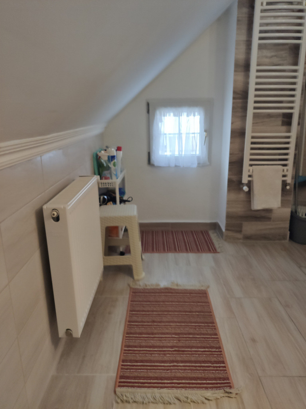 Ez egy egykori családi ház felső szintje, amely ma már hivatalosan társasházként működik, mégis megőrizte azt az érzést, amit a klasszikus otthonok tudnak: