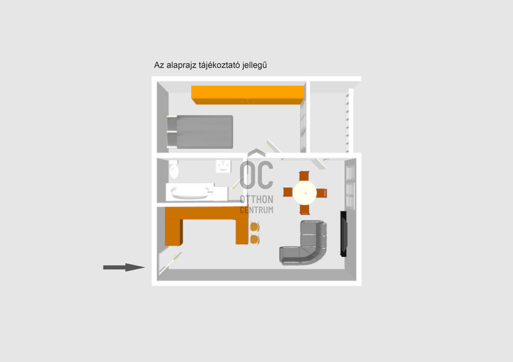- amerikai konyhás nappali, szoba, fürdőszoba