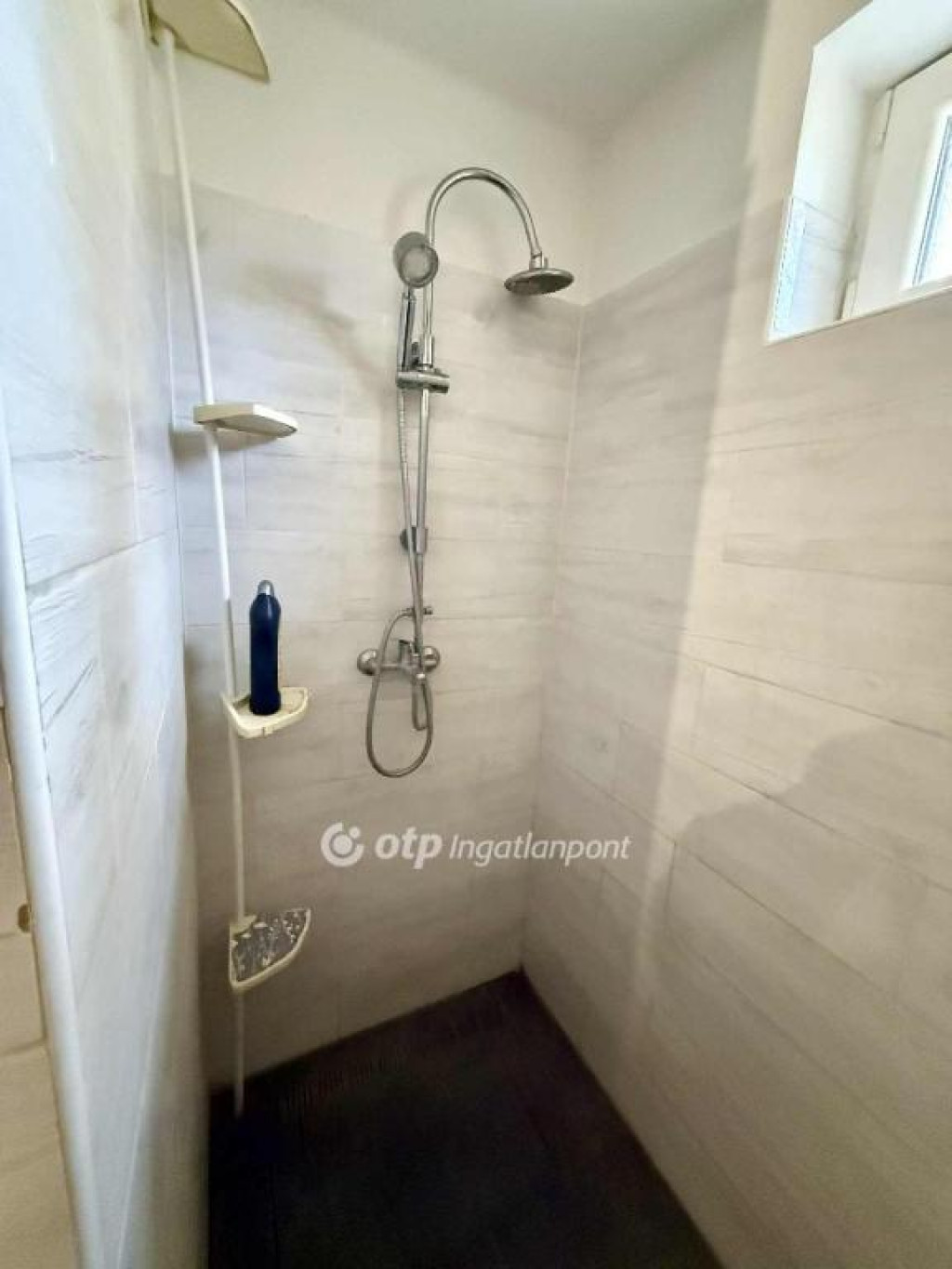 A zuhanyzós fürdőszoba letisztult, jól karbantartott állapotú.