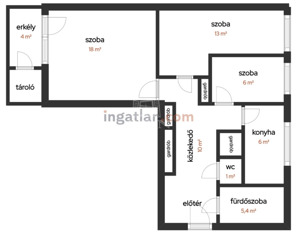 - szoba: 18 nm