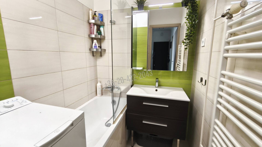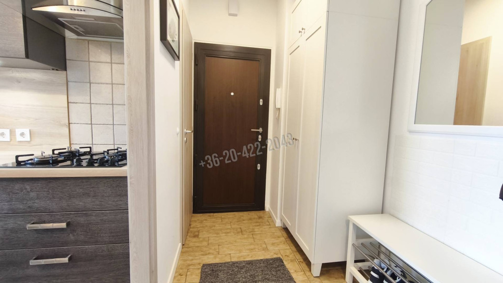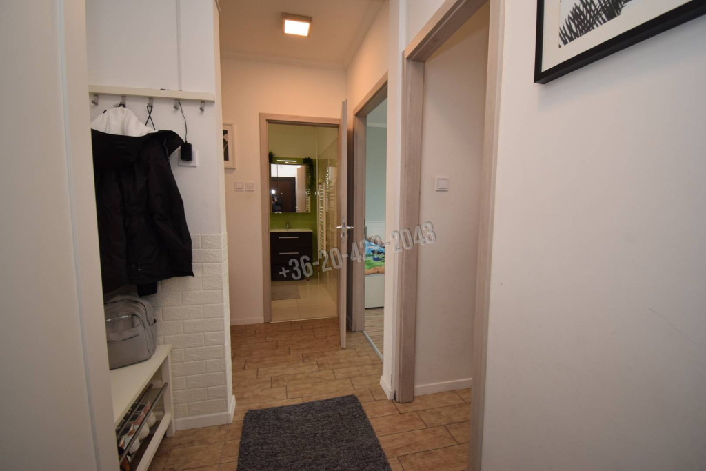 A lakást teljesen felújították 2019-ben, új biztonsági bejárati ajtót, klímát, víz és villanyvezetékeket, új konyhabútort építettek be, valamint új burkolatokat is kapott a lakás.