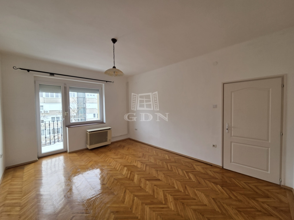 A lakásban található egy szoba, amely a nyugodt utcai környezetre néz.