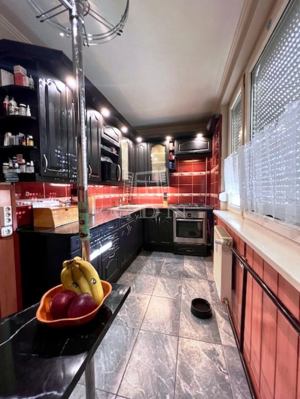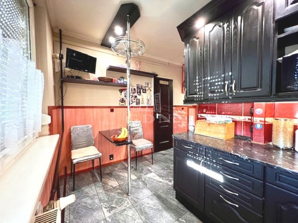 A beépített konyhabútor gépesítve, és a beépített bútorok a vételár részét képezik. A lakáshoz közös használatú tároló tartozik.