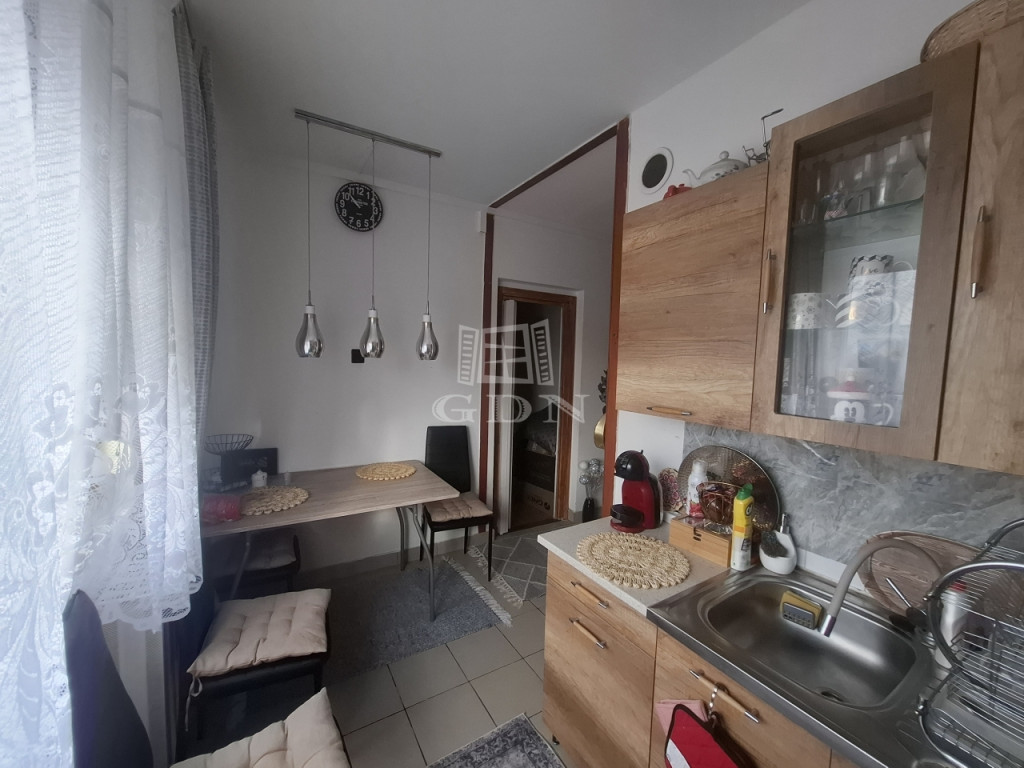 A beépített konyhabútor gépesítve, és a beépített bútorok a vételár részét képezik. A lakáshoz közös használatú tároló tartozik.