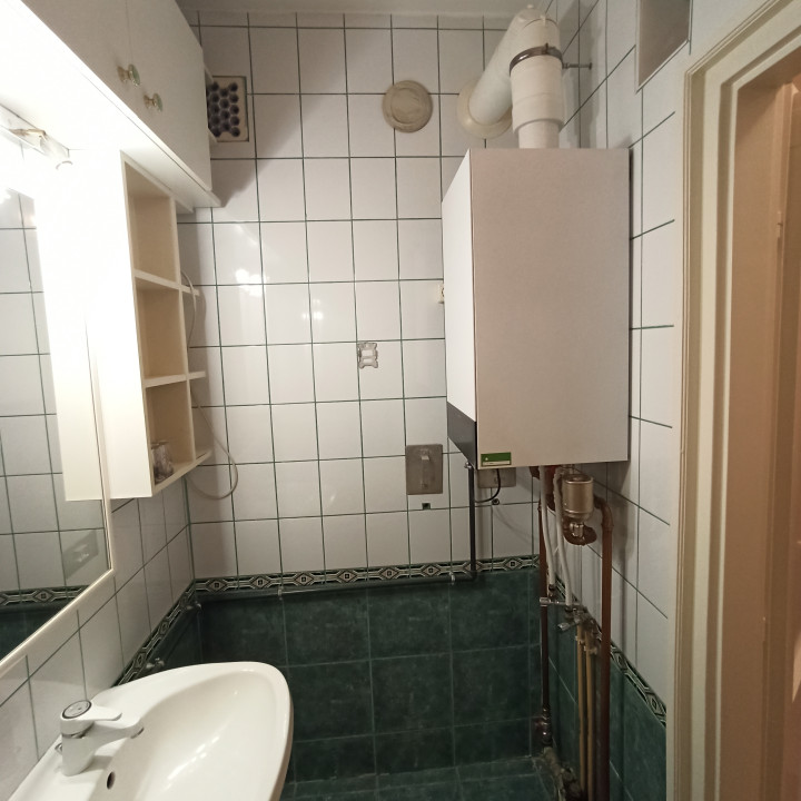 A fűtésről és a használati meleg vízről a közelmúltban beszerelt kondenzációs kazán gondoskodik radiátorokon keresztül.