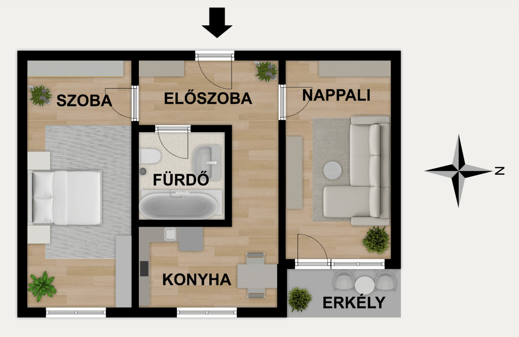 Az ingatlan 2 szoba, erkély, konyha, fürdő elosztású.