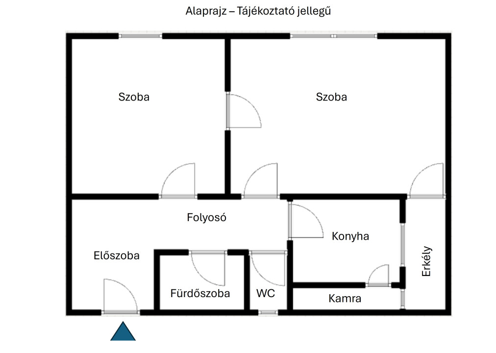 - 2 szobával, tágas konyhával, kamrával, előszobával és fürdőszobával rendelkezik