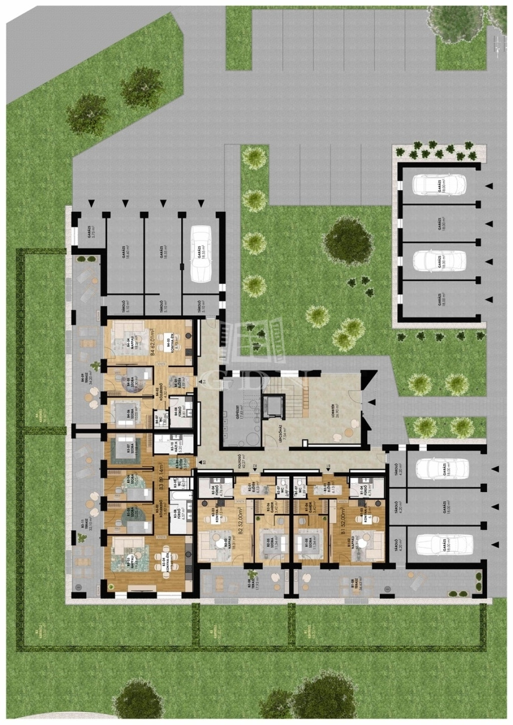 Modern megjelenésű, értékálló, kényelmes és élhető lakóparkban valamint az épületekhez kapcsolódó egyedi lakókörnyezetben szeretne élni? Hamarosan megvalósulhat az álma. A Gyöngyös-patak partján belváros közeli prémium lakások épülnek 20 000 m2-es területen, több ütemben. A tervezés során a funkció, a környezettudatosság és a kényelem voltak a legfontosabb tervezési szempontok. Így különösen az épületek szellős elhelyezése, a lakások kedvező tájolása, az épületek körül a maximális zöldterület és a megfelelő garázs szám biztosítása, a színvonalas közösségi funkciók kialakítása. A lakások értékállóságát és kényelmét az átgondolt tervezés, a minőségi anyagok használata, a nagy méretű, intim teraszok, a lift, a megújuló energia, egyedi és közös tárolók, fedett beállók, garázsok biztosítják. Az alkalmazott szerkezetek megfelelnek a ma érvényes “közel nulla energiaigényű épületek” követelményeinek. Az épületek előtti sétányok díszkivilágítást kapnak mozgás- és alkonykapcsolás vezérlésével. A sétányokról különböző típusú gépkocsi beállóhelyek – felszíni fedett, és normál parkolók ill. garázsok - közelíthetők meg. Egyes parkolók között beruházói döntés szerinti helyen és műszaki kialakítással, elektromos töltőpont csatlakozási lehetőség biztosítható. A közös területek alkalmasak játékra, pihenésre, a földszinti lakások előtti kijelölt zöldterület saját használata mellett. A ház kaputelefon rendszerrel lesz felszerelve. A lépcsőházban és egyéb közös terekben légterenként időkapcsolós világítás lesz kiépítve. A mai korszerű követelményeknek, az épületek hő és hangszigetelése a vonatkozó szabályoknak maximálisan megfelel. A külső hőszigetelés vastagsága 16-20 cm. Az ablakok 3 rétegű üvegezéssel kiváló hőszigetelésű nyílászárók. A lakások padlófűtéssel rendelkeznek, mely a szabadabb belsőépítészeti kialakításoknak ad lehetőséget. A tervek szerint a központi gépészet távfelügyeleti rendszerrel ellátott, távfűtés, így a karbantartás és üzemeltetés során ez gyors beavatkozást és üzembiztonságot eredményez. A fogyasztás egyedi mérőkkel mért, az elszámolást a közös képviselő végzi. A megújuló energia tervek szerint a megfelelő energetikai szabályok alapján kerül telepítésre pl. napelemrendszer. (Kiviteli terv során változhat: kondenzációs gázkazán és/vagy hőszivattyú). Belsőépítész által tervezett lakások, nagy teraszokkal kapcsolódnak a természethez. Befektetőknek, nagy családoknak alkalmas lakások kerülnek kialakításra. A kisebb lakások 52 m2, 62 m2, a nagyobb lakások 67 m2, 76 m2 és 89 m2 nagyságúak lesznek. 12-33 m2 fedett intim teraszok kerülnek kialakításra. Aktuális, bevezető ajánlatban az 1db felszíni parkolót, vízlágyító rendszert, klíma előkészítést ajándékba adja a beruházó. A lakásokhoz tárolók, garázsok vásárolhatók. Kimerítőbb tájékoztatást személyesen. A hírdetésben szereplő lakás földszint 1. ...TOVÁBBI, TÖBBEZRES INGATLAN KÍNÁLAT: - GDN azonosító: 386818