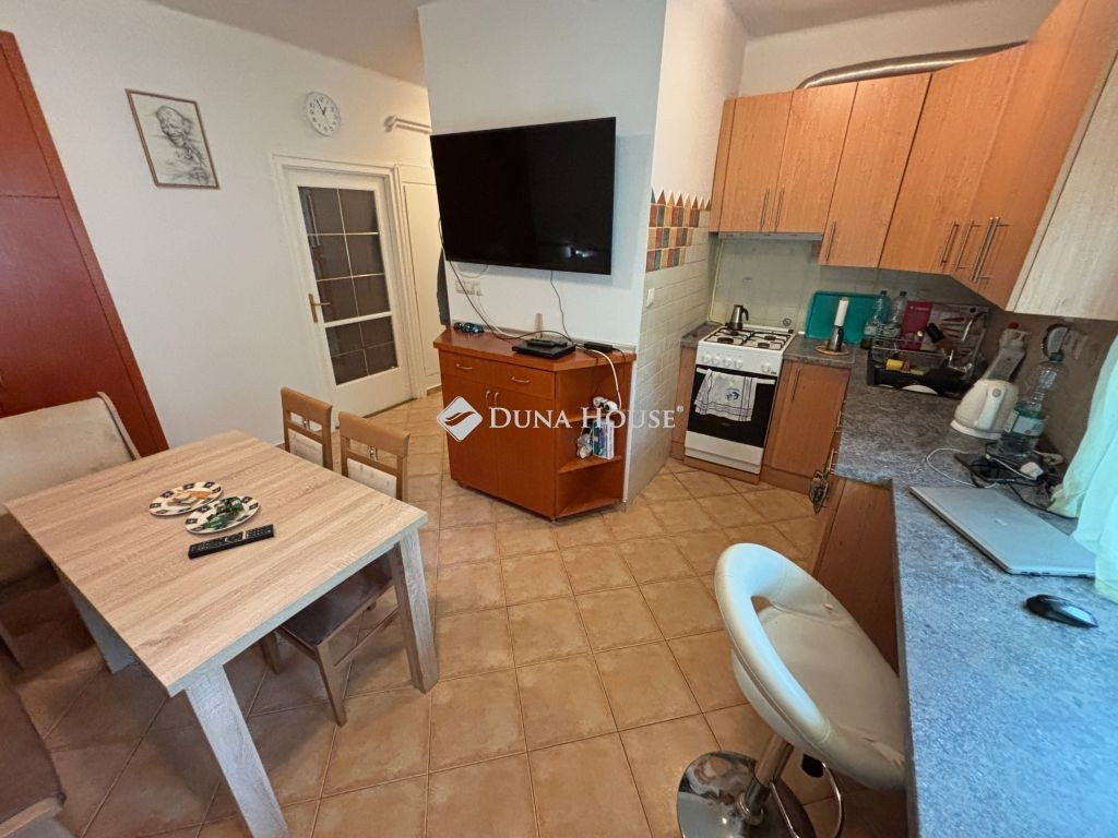 A közlekedő egy tágas (18,5 m2) konyha-étkezőbe vezet, innen nyílik a két külön bejáratú szoba, valamint a fürdő és a külön wc is. A korszerű, hőszigetelt műanyag ablakok redőnnyel és rovarhálóval is fel vannak szerelve, a bejárati, több ponton záródó biztonsági ajtó. A lakás fenntartási költségei szolidak a fűtést és a meleg vizet egyedi gázcirkó kazán biztosítja, a havi gáz számla télen is mindössze 7000 Ft. A vételár a teljes bútorzatot tartalmazza, az ingatlan gyorsan birtokba vehető, tehermentes. A lakáshoz tartozik 4 m2 saját pince az alagsorban, a ház környékén a parkolás ingyenesen megoldott...