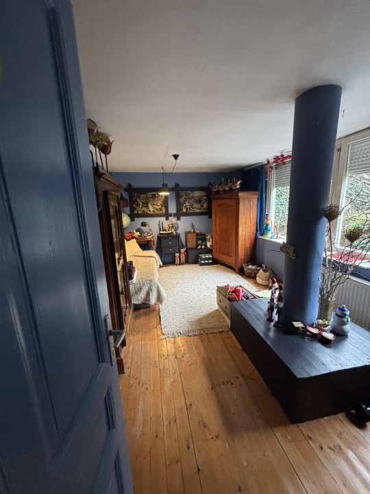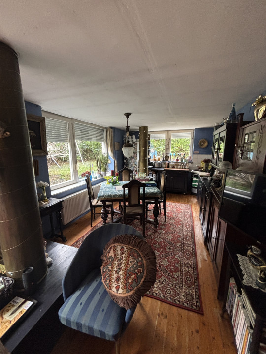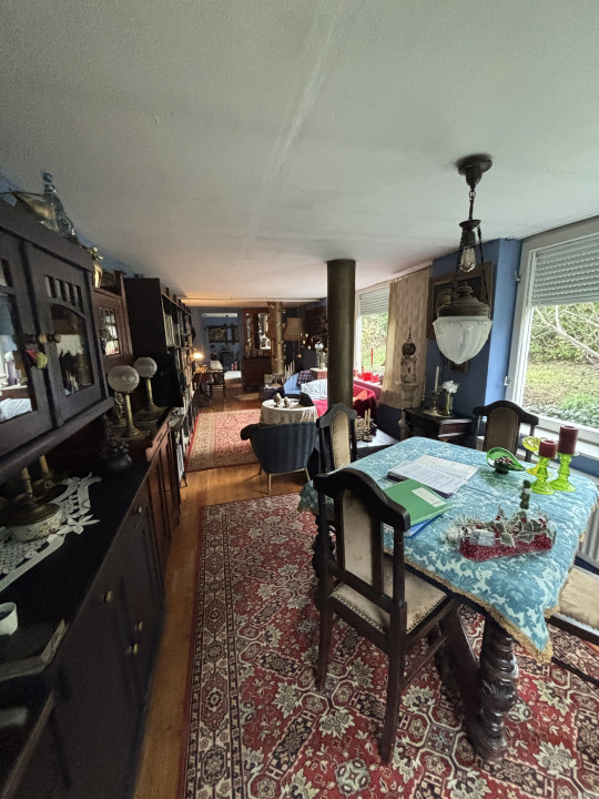 Az emeleti lakás közel 70m2-es, 3 szobás. Az alagsorban 1997-ben építési engedéllyel kialakított 80m2-es tároló, hobbihelyiség, műterem jelenleg egy nappali+2 szobás lakásként funkciónál, ahol egy zuhanyzó és wc is található és a tárolón keresztül lehet megközelíteni.