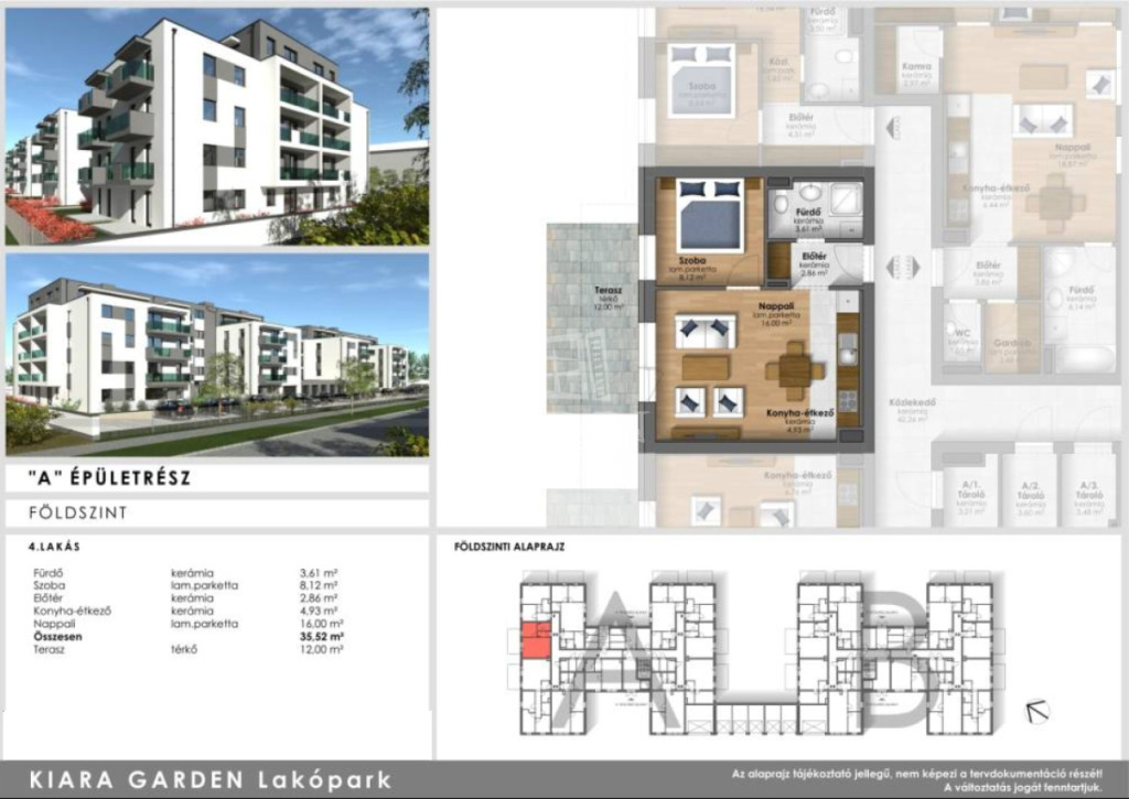 Szombathely zöldövezeti, dinamikusan fejlődő városrészén, energiahatékony, modern lakások várják új tulajdonosaikat. Kiara Garden lakóparkban kettő ütemben épülő , minden igényt kielégítő lakásai nappali+1 szobával, nappali+2 szobával, nappali+ 3 szobával fognak rendelkezni. Az ingatlanokhoz nagy erkélyek teraszok is tartoznak. A legnagyobb lakás dupla komfortos kialakítású lesz. Egyedülállóktól a nagy családosokig megfelelő otthona lehet bárkinek. A belváros közeli ingatlanok lehetőséget biztosítanak egyedi belső kialakításokra. A lakás gazdaságos fűtéséről és melegvíz ellátásáról távhő szolgáltató gondoskodik. A fűtésrendszer egyedileg szabályozható, saját hőmennyiség mérővel ellátott. A hőleadás padlófűtésen keresztül történik. Az ingatlanok ideális hőmérsékletét, a nappaliban elhelyezett split klíma biztosítja. Az épületben kellő számú zárható tároló kerül kialakításra, külön bejárattal. ( 2.96 m2-es tároló 1 790 000 Ft ) Természetesen vannak nagyobb tárolók is. A lakótömbök udvarán található felszíni parkolók ára 1 490 000 Ft. Bővebb tájékoztatásért kérem vegye fel velem a kapcsolatot. ...TOVÁBBI, TÖBBEZRES INGATLAN KÍNÁLAT: - GDN azonosító: 390653