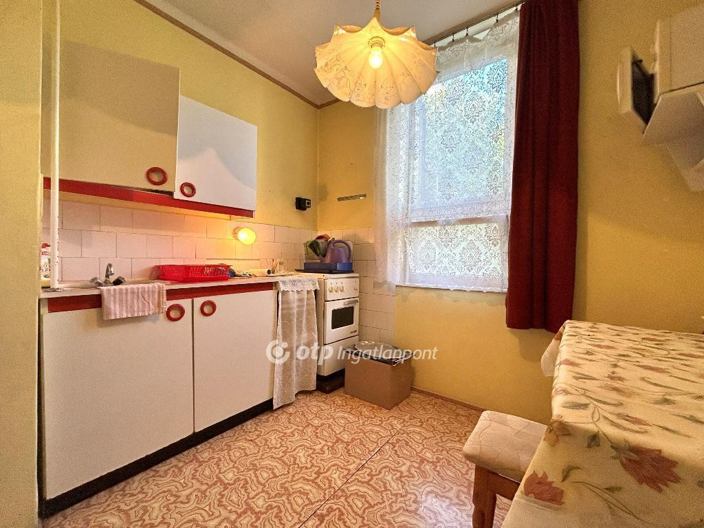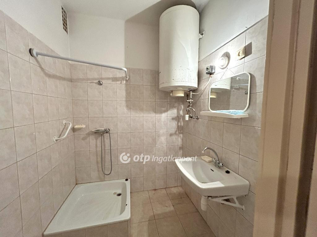 A lakás belső tere felújítást igényel, ugyanakkor a fürdőszoba már korszerűsítve lett: új csempeburkolattal és zuhanytálcás kialakítással rendelkezik. A WC külön helyiségben található. Az előszobában egy beépített szekrény biztosít praktikus tárolási lehetőséget, amely ugyan a régebbi évek stílusát idézi, de jól használható. Az ablakok a kertre néznek, így az ingatlan nem utcafrontra nyílik, ami kellemesen csendes környezetet biztosít.