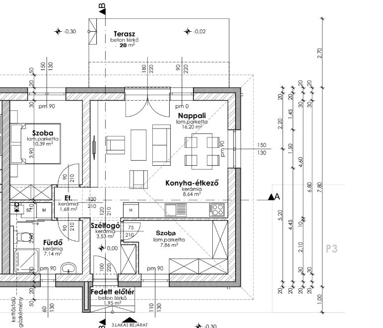 Ez az ingatlan nettó 55m2-es nappali+2félszobás, 270m2-es kerttel.