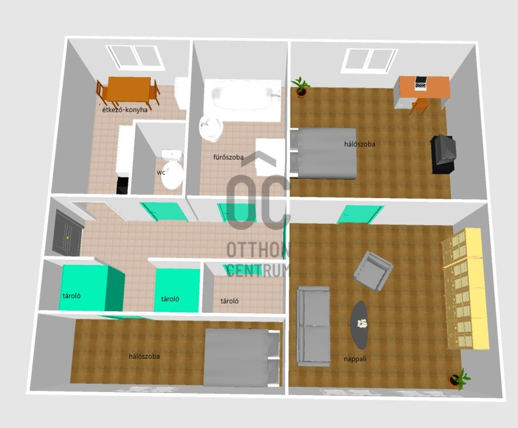 - 2 szoba + tágas nappali
